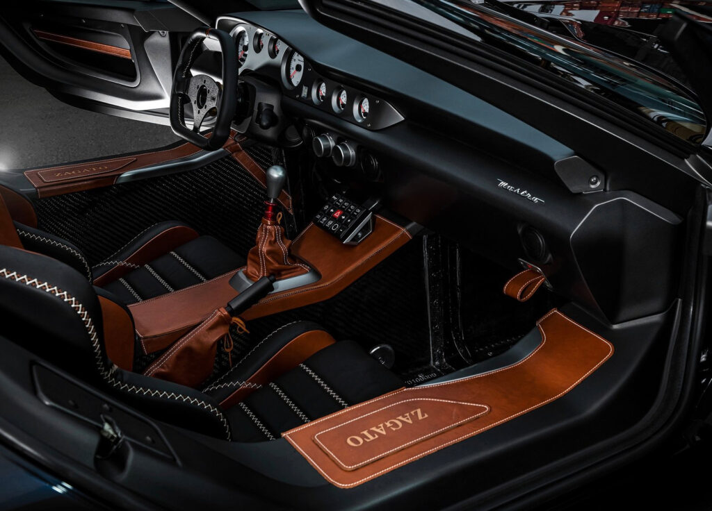 The exterior of the Mostro Barchetta is designed by Zagato’s Vice President of Design, Norihiko Harada, and takes inspiration from the classic barchettas of the 1950s. The car’s compact size and sleek, aerodynamic lines evoke the look of a speedboat racer, while the wrap-around windscreen and two seats add to its sporty character.